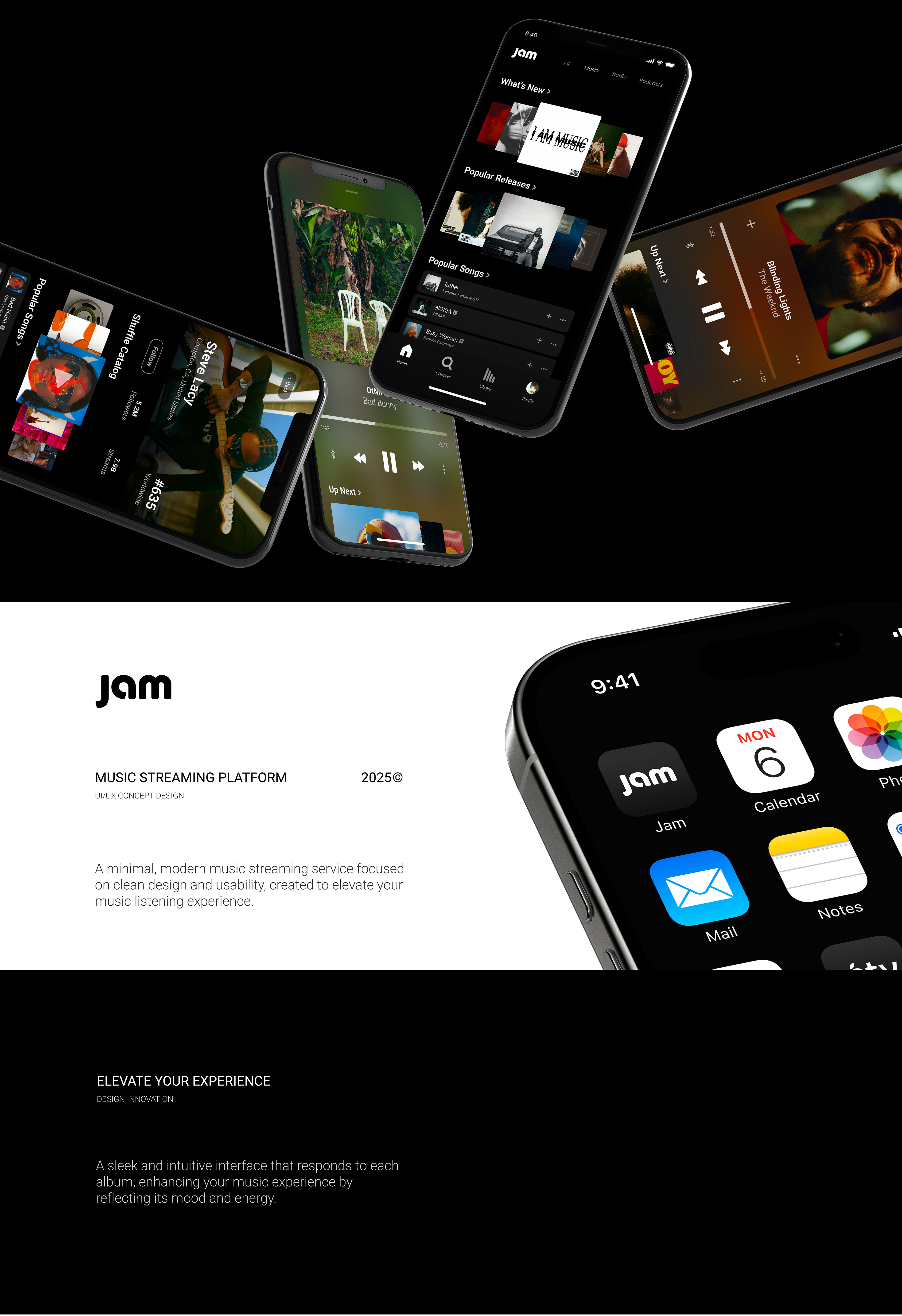 Jam - Music Streaming Service UI/UX Design Concept